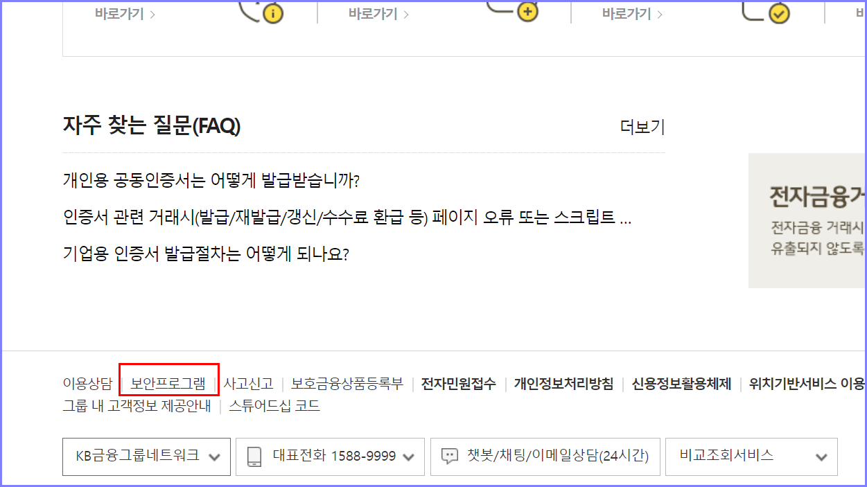 국민은행 홈페이지를 아래로 내리면 보안 프로그램이라고 보이실 거예요!