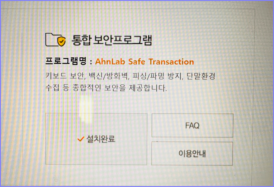 설치 동의를 누르면 AhnLab Safe Transaction 설치 창이 뜹니다.
