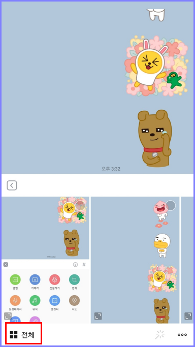 자 여기에서 중요한 거~ 사진보낼때 많이 지나쳤던 바로!! '전체'를 눌러주세요!
