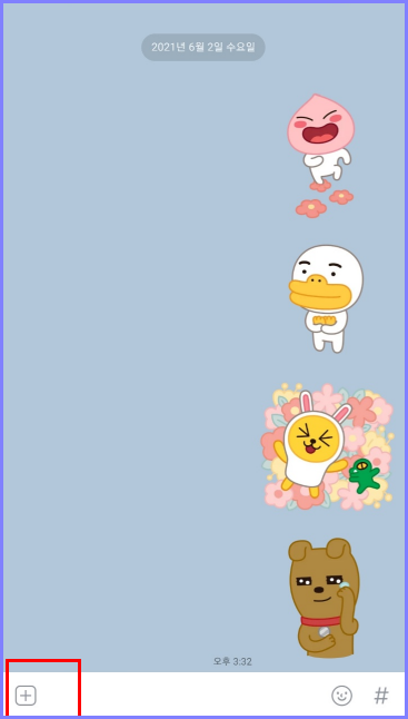 먼저 사진을 보내려면 카카오톡 대화창 아래 '+' 부분을 눌러주세요!
