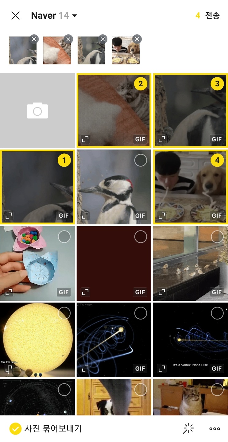 자! 그러면 묶음 사진은 어떻게 보내는지 알아볼까요?