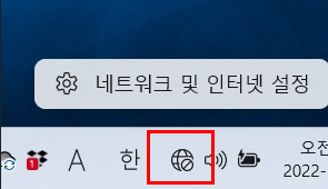 오른쪽 하단에 인터넷 아이콘이 보이는 경우