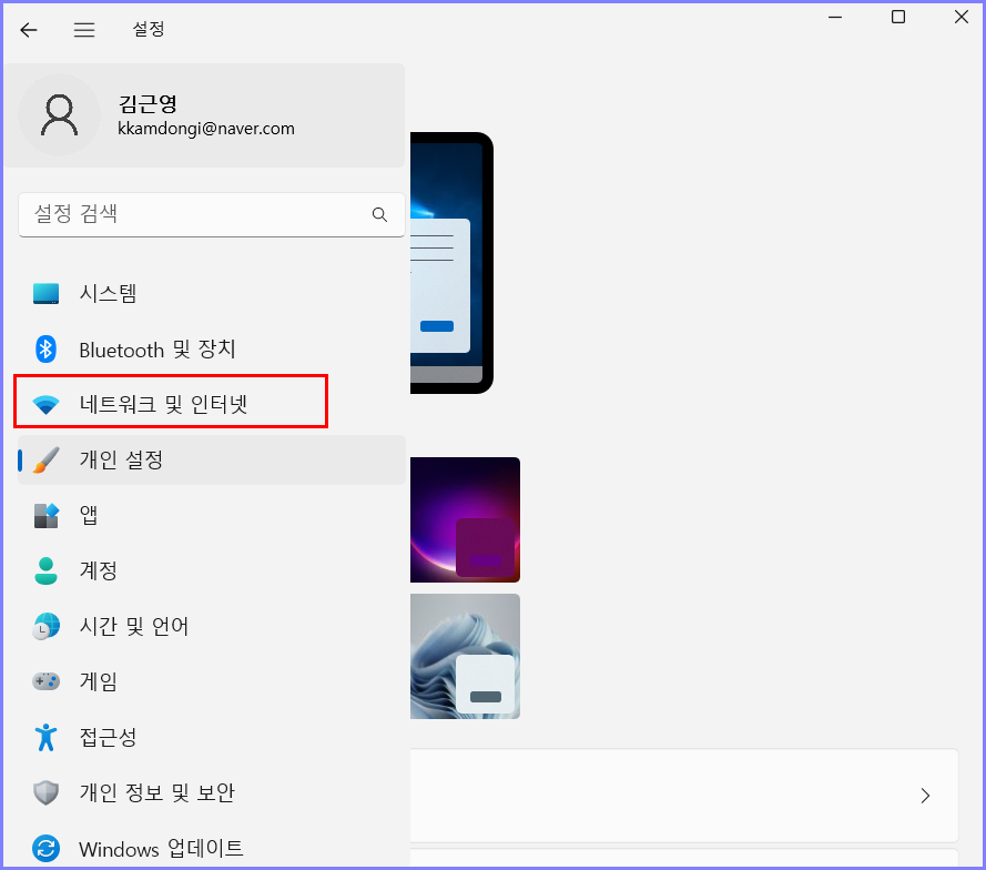 윈도우 11로 업그레이드한 후 네트워크 및 인터넷을 찾기가 어려웠는데요~