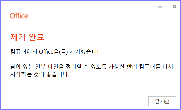 이제 제거가 다 되면 완료 창이 뜹니다. 'Close'를 눌러주면 됩니다!