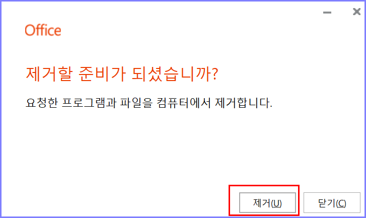 제거 완료가 되면 '닫기'를 눌러줍니다.