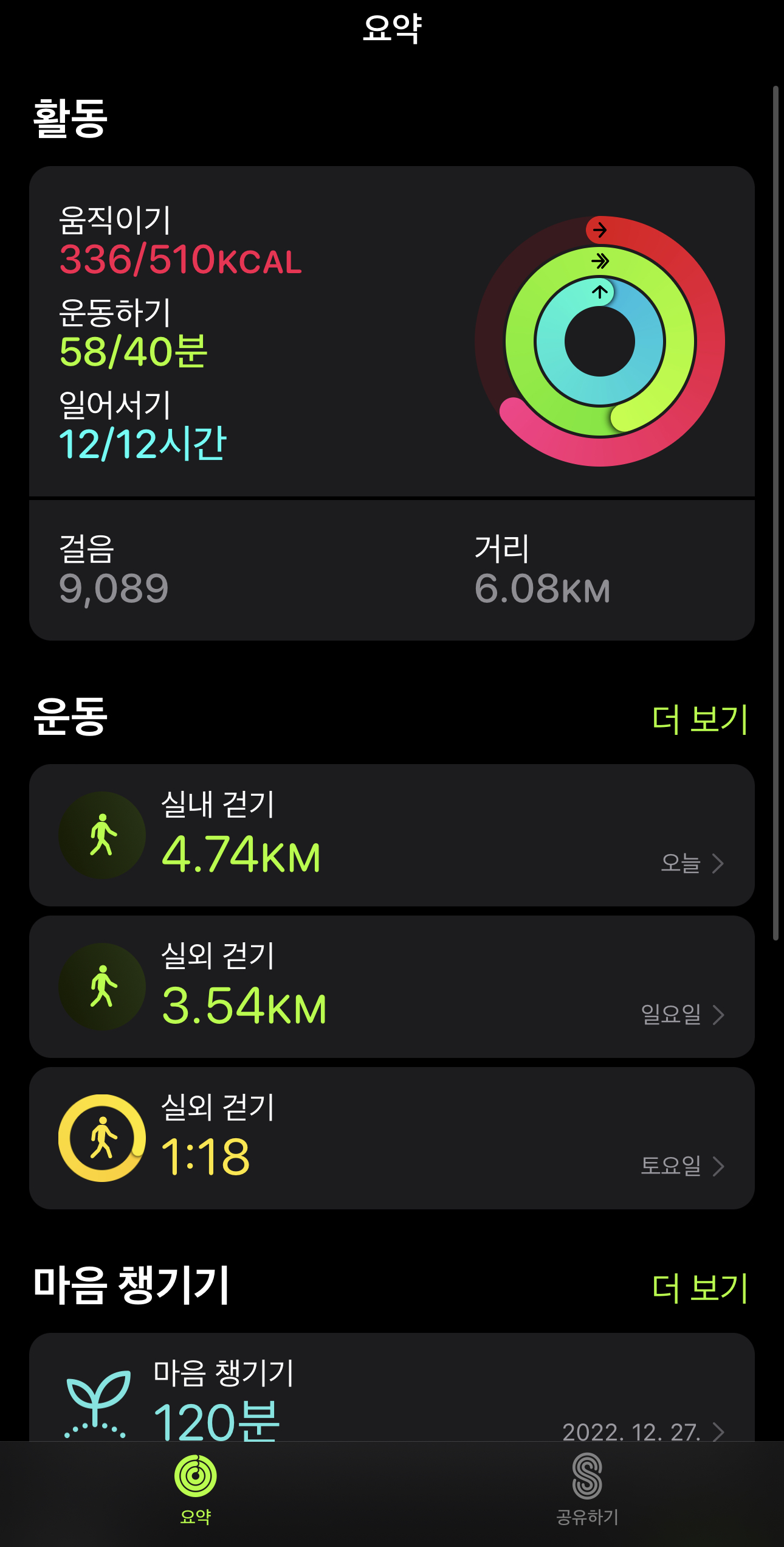 이렇게 애플워치로 운동기록을 알게되니 정말 매일 운동을 하게 하는 원동력이 되는 것 같습니다.