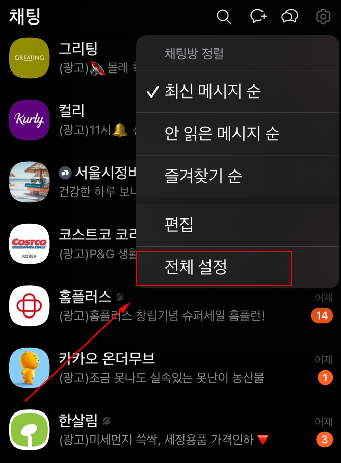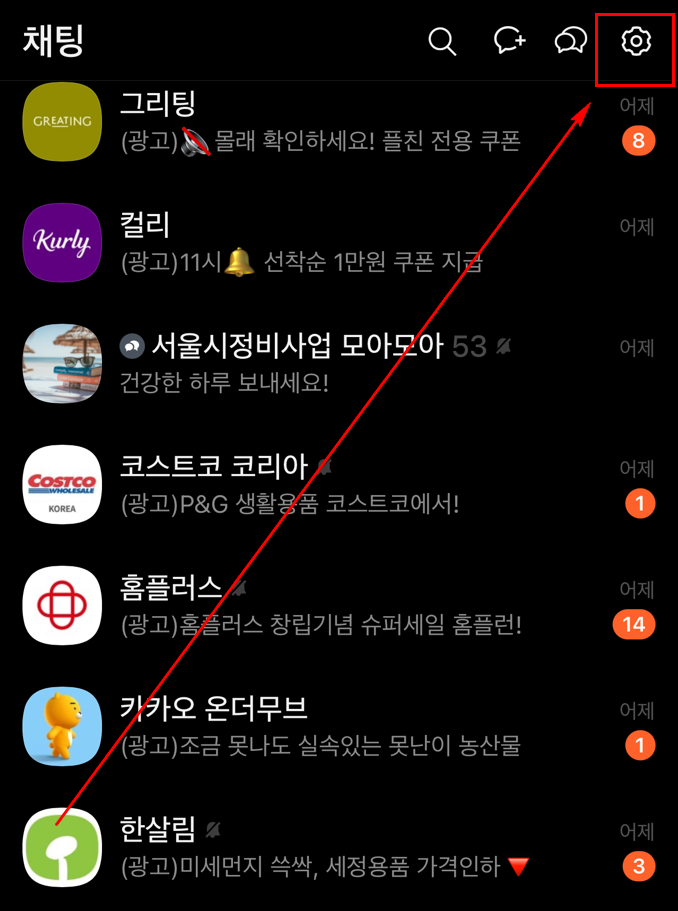 먼저 카카오톡 설정 톱니바퀴 모양을 클릭해 줍니다!
