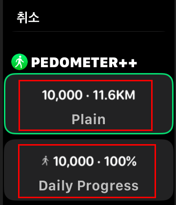 걸음수와 거리수를 동시에 나오게 하려면 상단을 선택해 주고 걸음수만 나오게 하려면 하단을 선택해 줍니다!