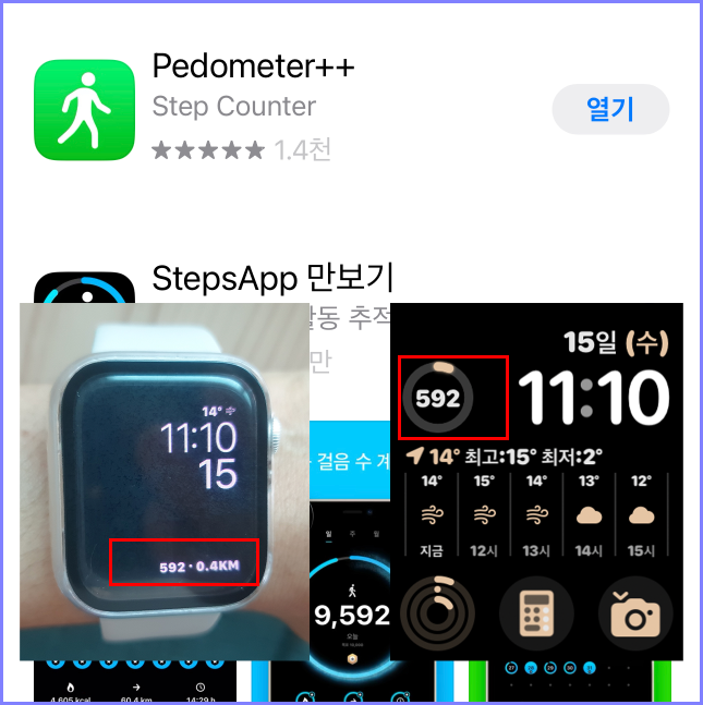 그러면 페도미터 어플을 다운로드하고 애플워치 시계페이스에 표시되도록 하는 방법을 설명하겠습니다!