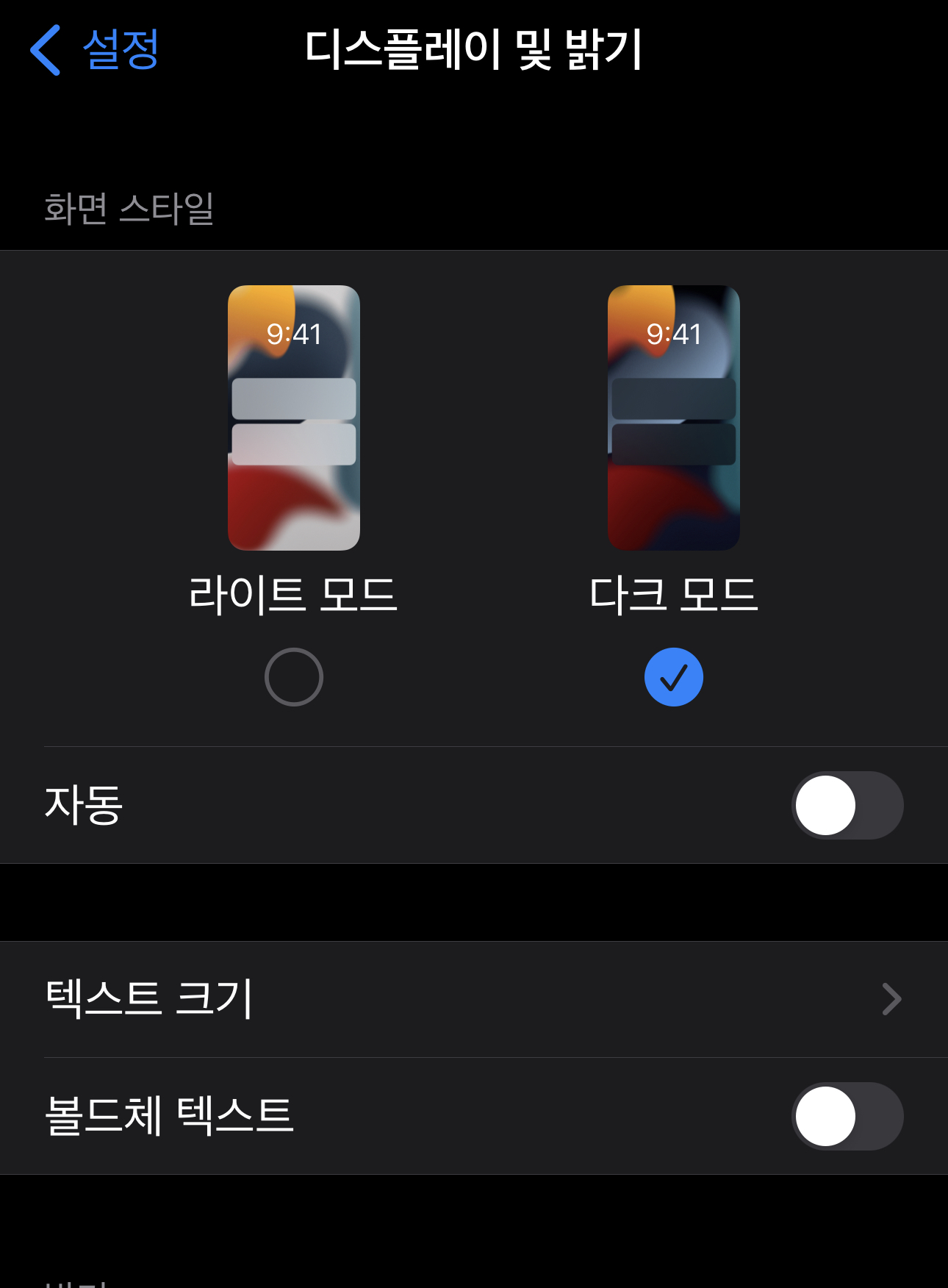 여기 화면스타일에서 바로 라이트모드와 다크모드를 바꿔줄 수 있습니다.
