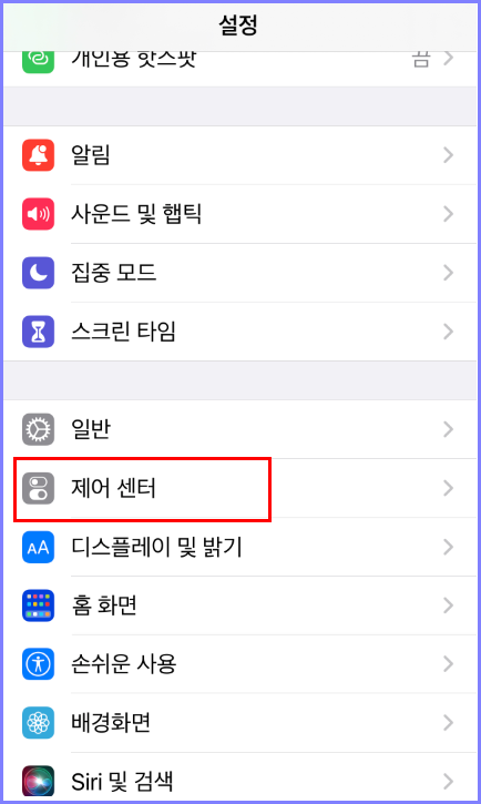 설정에서 - 제어센터에 들어갑니다.