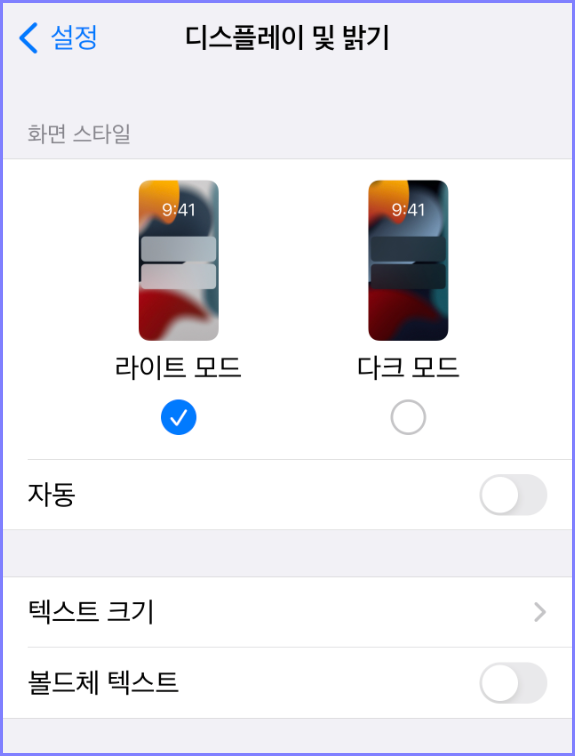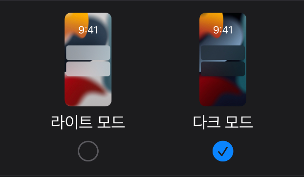 아이폰이나 아이패드는 기본이 라이트모드로 되어있습니다.