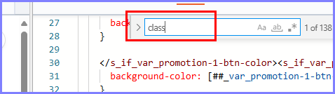 html 아무 데나 커서를 대고 한번 눌러준다면 ctrl + f를 눌러 class 코드를 찾아줍니다.