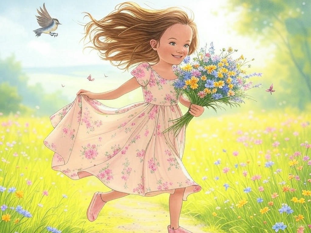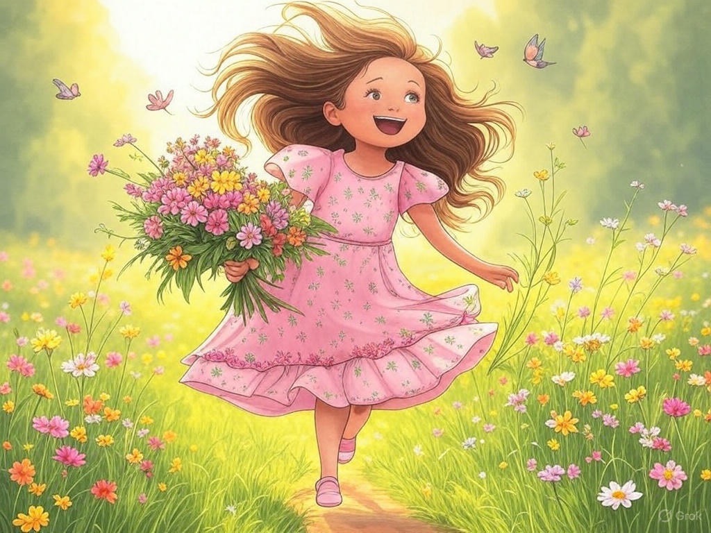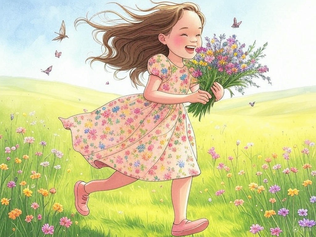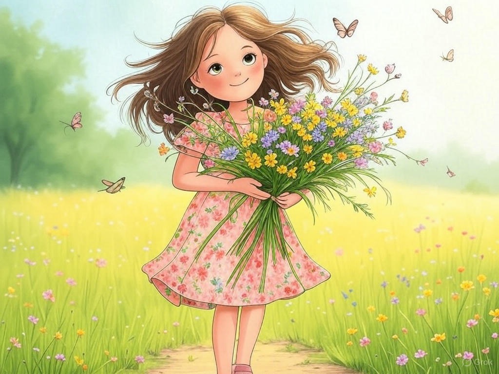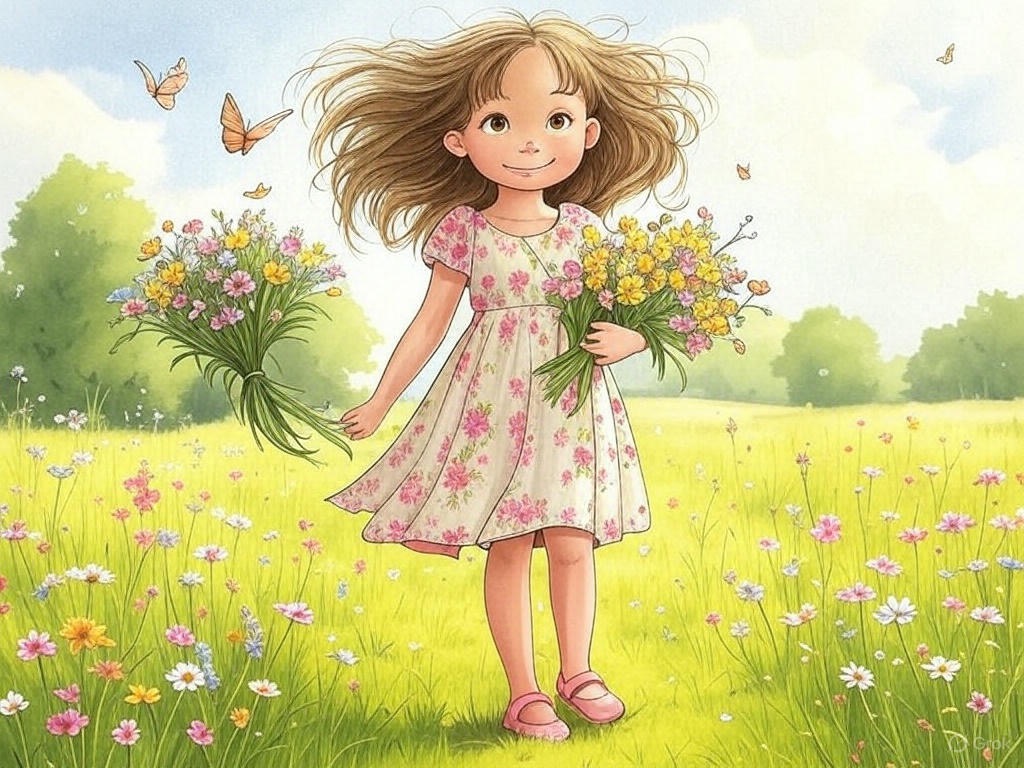 '소녀가 큰 꽃다발을 한 아름 안고 있어야지.. 소녀몸도 비율이 이상해'라고 했더니 또 다른 그림을 바로 그려줍니다.