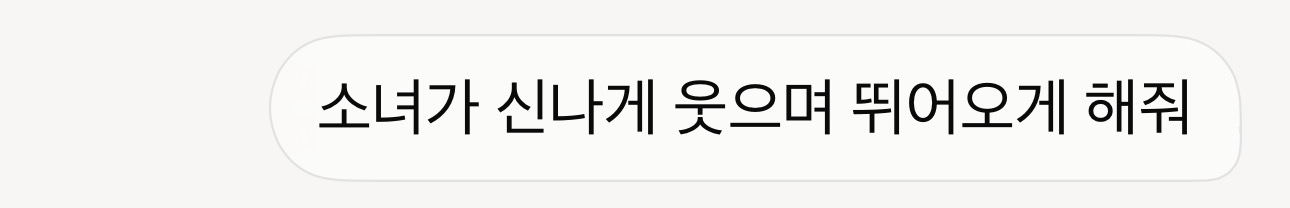 소녀가 뛰면 좀 자연스럽겠지 하는 맘으로 '소녀가 뛰어오는 장면으로 그려줘'라고 했습니다.