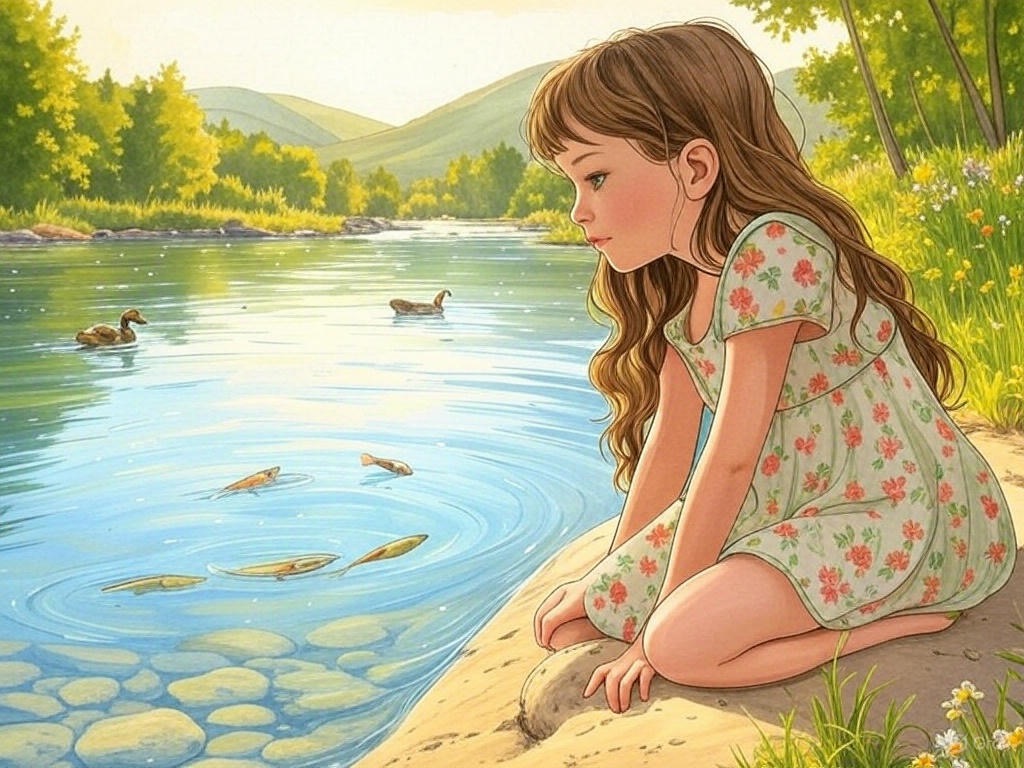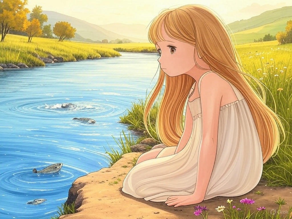 이번에는 '시골에 살고 있는 순수한 소녀가 냇가에 앉아서 물고기를 바라보고 있습니다'라는 제시어를 입력했습니다.